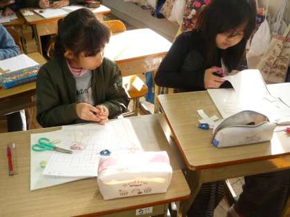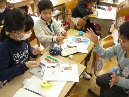 はこの形の応用でさいころを作りました。思いの詰まったさいころの出来上がりです。作った後は,楽しく遊びました。