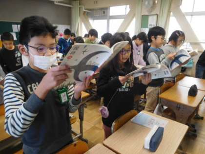 内容を読み取るために「ウナギのなぞを追って」の音読をしています。