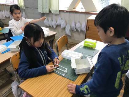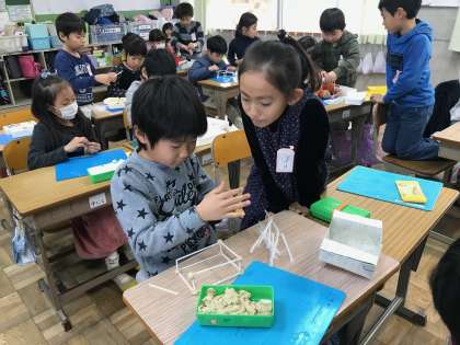 どのストローを何本使うのか,粘土の球は何個必要なのかをペアで考えながら,作りました。