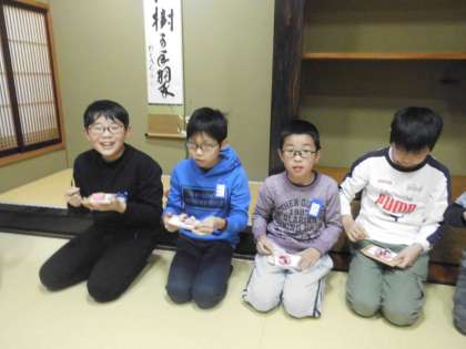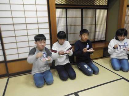 教わった食べ方に苦戦しながらも,みんなおいしそうに食べていました。