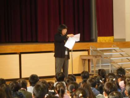 校長先生から夢ポストに入れた俳句をよんでもらいました。将来に向けて今がんばれることを俳句に書きました。