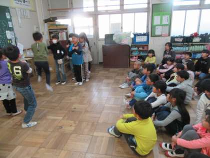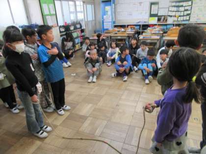 休み時間に,長縄の得意な先生から教えていただいたことを,みんなに伝えています。