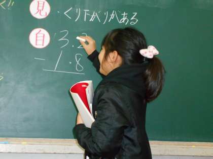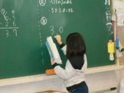 小数の引き算をします。説明をしながら,ひっ算を組み立てます。