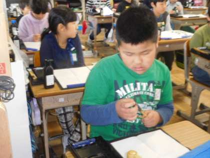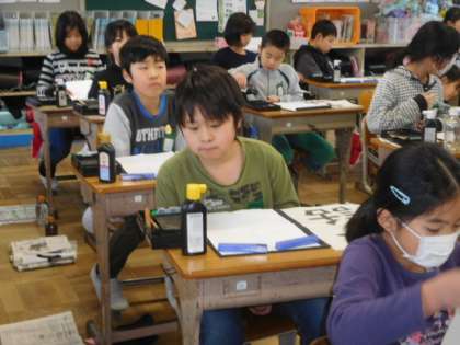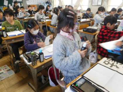 「手話」という文字を書きます。画数が増えると一画一画の筆の太さが大切になってきます。