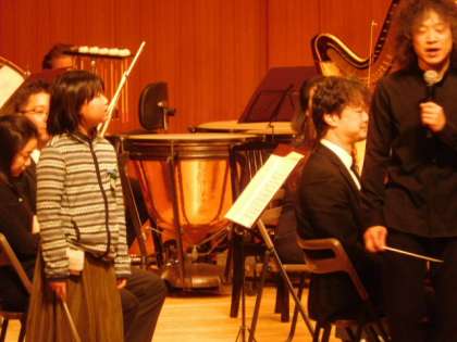 指揮者になりきって,観客席で指揮棒を振る真似をしたり,代表で前に出て指揮をしたりとオーケストラに参加させてもらえることができました。