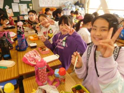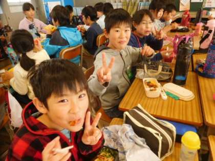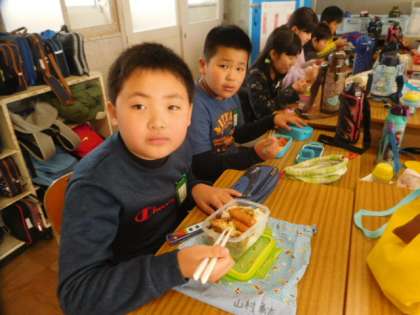 校外学習から帰校後,お家の方が朝早くから作ってくださったお弁当を食べました。