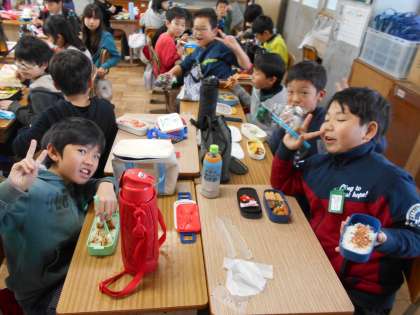 心もおなかも満たされました。お弁当のあとにふり返りの感想を書きました。「生の音楽鑑賞は,迫力があってすごい。」「聴いていて気持ちがいい。」など,音の響きを全身で感じることができたようです。