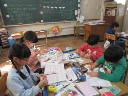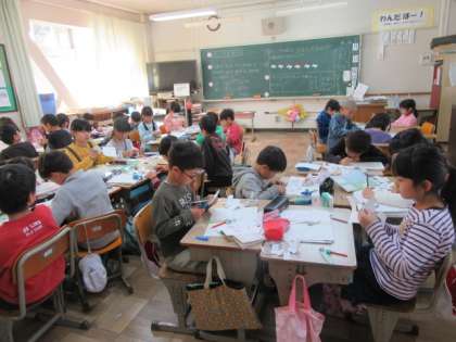 向かい合っている面の目の数の合計が7になること発見した人がいて,みんなから大きな拍手をもらっていました。