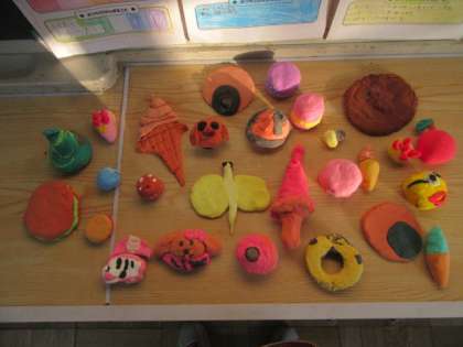 紙粘土に絵の具を混ぜて,色粘土を作って,マグネットに仕上げます。