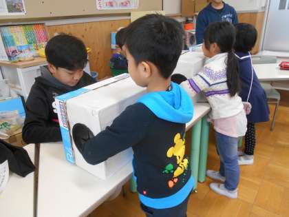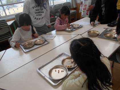今日からわくわくフェアが始まりました。今日はランチルームでクイズや豆はこびなどをしながら食べ物について楽しく学びました。