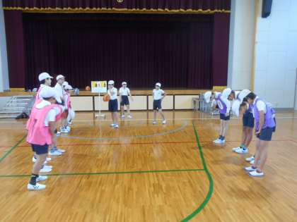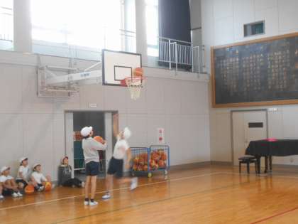 ゴールが入るまで次の人にパスできない「ドリブルゲーム」でウォーミングアップをしました。