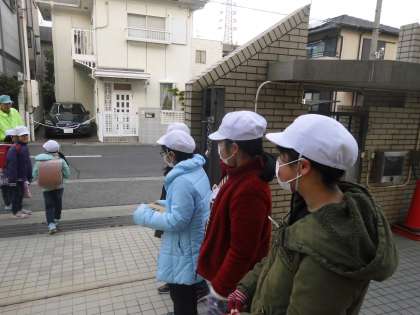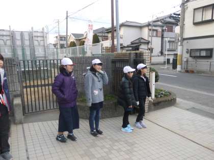 今日から5年生があいさつ当番です。相手の顔を見て元気な声であいさつしてほしいと思います。