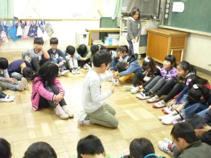 みんな遊びで,はんかちおとしをしました。盛り上がりました。