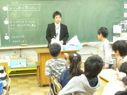 大きな数の学習です。何枚あるかグループで工夫し数えました。