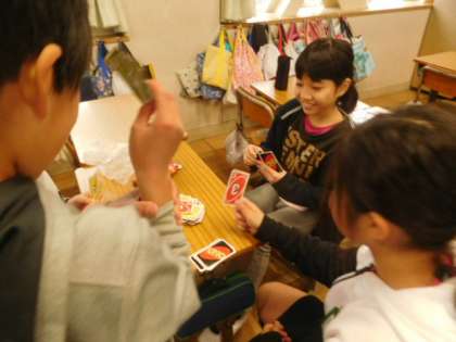 雨が降っている日は教室で友達となかよく過ごしています。