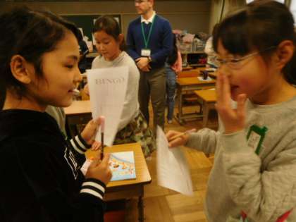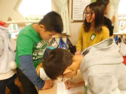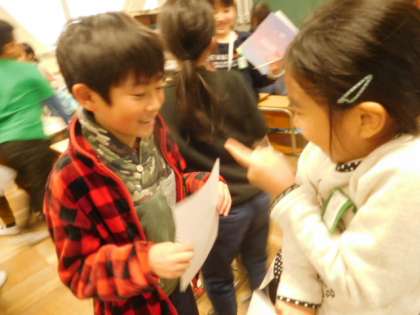 16人の友だちの名前を集めて,ビンゴカードを作りました。