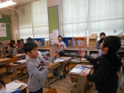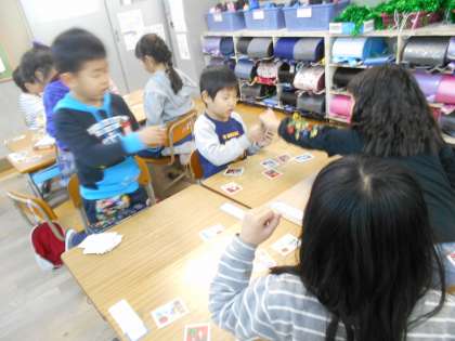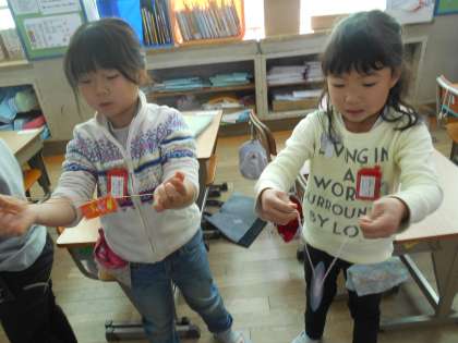 いろいろな昔遊びに取り組んでいます。ぶんぶんごまはコツをつかんで上手に回せるようになりました。