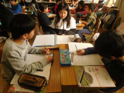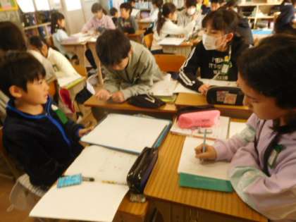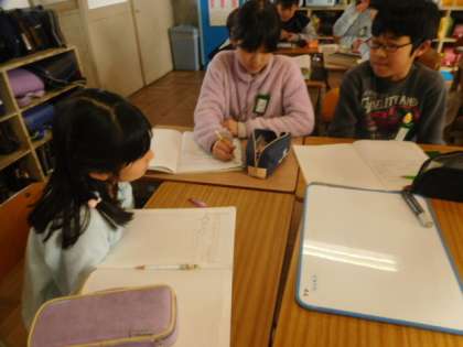 班交流では,「水の温度が変わる」「水の体積が減る」「ぼこぼこと大きい泡が出てくる」などいろいろな予想がでてきました。