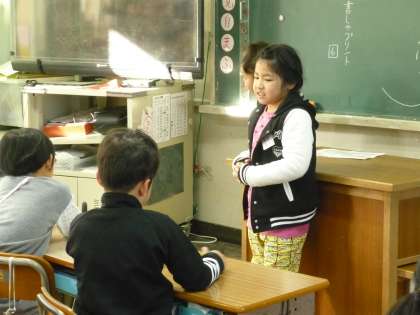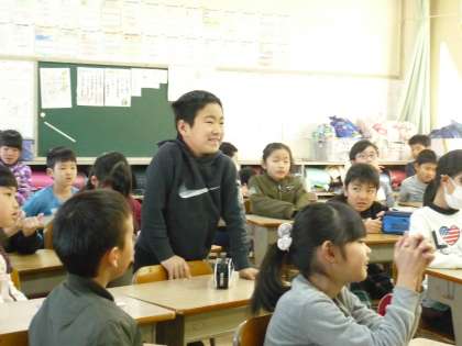 朝のスピーチタイムです。休みの日の楽しい話がありました。