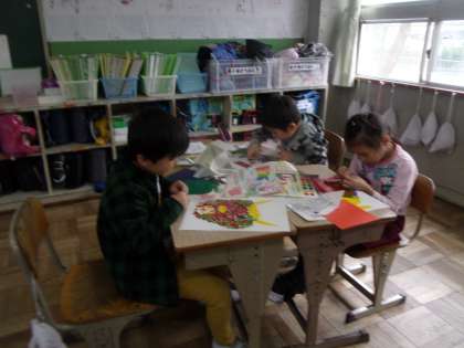 紙はんがの下絵づくりも,そろそろ仕上げです。