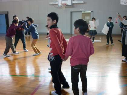 5年生が積極的に手をつないだり、肩に手を添えたりしてくれたので、安心して活動することができていました。