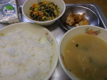 みそ汁・小松菜の塩麹炒め・やきとり