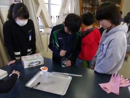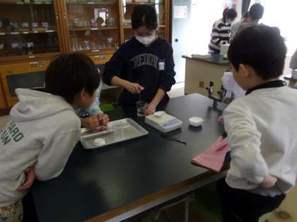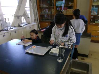 食塩を溶かす実験をしました。