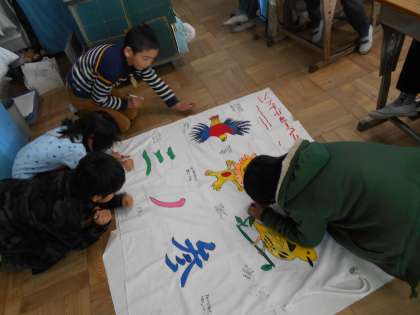 2回目の長縄集会でした。2連覇することができましたが,記録は減ってしまいました。反省会をして,みんなで3回目への気持ちを話し合い,学級旗に思いをかきました。