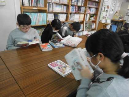 図書室で静かに読んでいます。