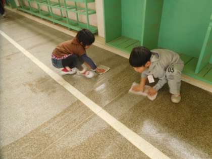 時間いっぱいまで,長い廊下を友だちと協力しながら,掃除することができました。