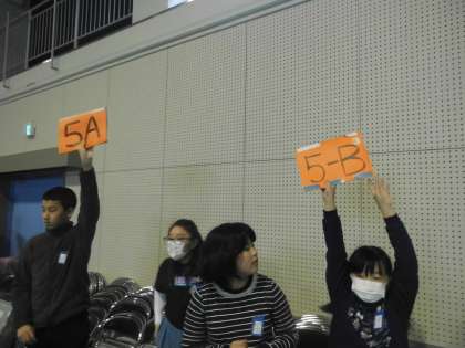 交流ファイルを持って先頭に立ち,1〜4年生の児童を点呼した後,それぞれの教室で活動しました。
