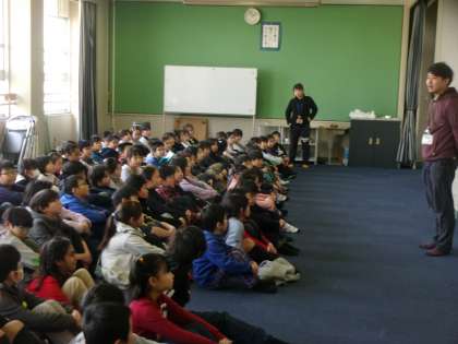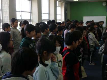 二分の一成人式に向けて学年で多目的室に集まり,合同練習をしました。