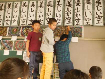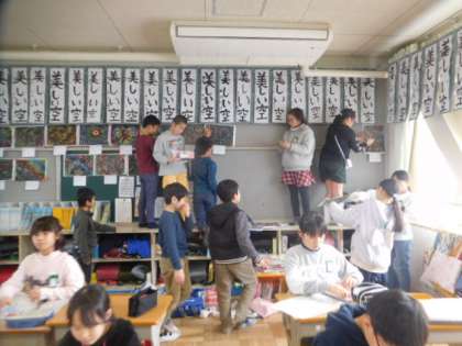 出来上がったら,協力して掲示をしてくれました。あっという間に鮮やかな教室に変身しました。