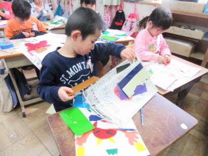 カラーシールを台紙にはっていきます。
