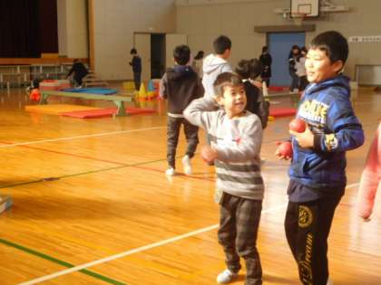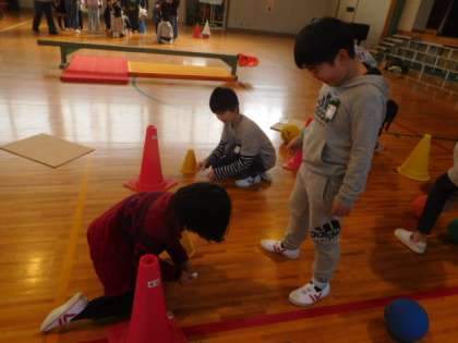 まとあて,たからさがし,ふくわらい,伝言ゲームと4つのブースを開設して交流しました。