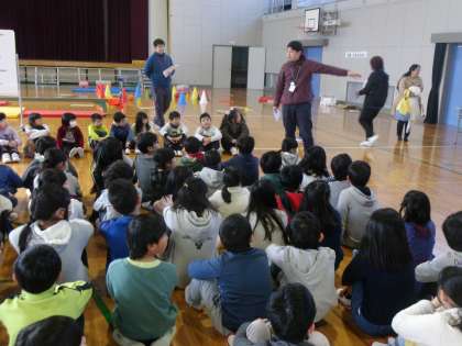 今日は,なかよし学級の友達とふれあう「なかよし交流会」の日です。まず初めに,あいさつをしてから今日の流れを説明しています。