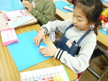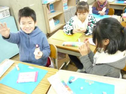 マグネット作りをしています。自分の好きな形をねんどで作っています。