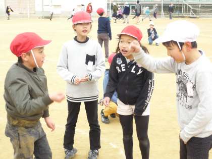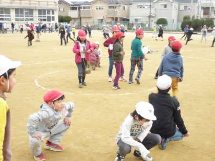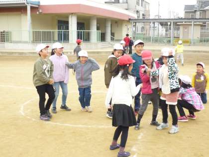 みんな遊びで,「たちかく」をしました。初めはルールがわからなかった子も,みんなで遊ぶとルールがわかって楽しくあそんでいました。