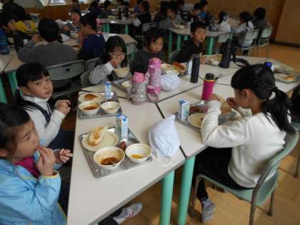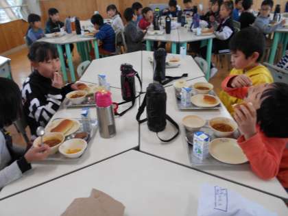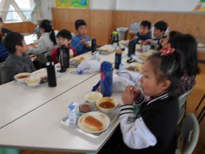 3年生最後のランチルームでした。早く準備ができたので,おしゃべりを楽しみながら給食を食べました。