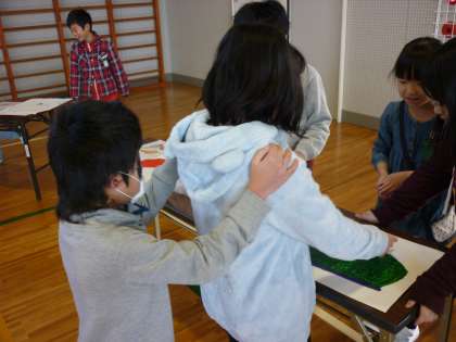 福笑いは、目隠しをはずした途端「え〜っ!」と大盛り上がりでした。