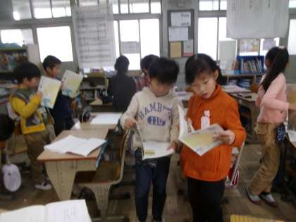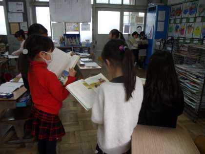ペアをつくり,「スーホの白い馬」のお話を対戦形式で音読します。