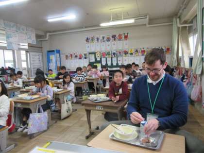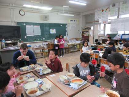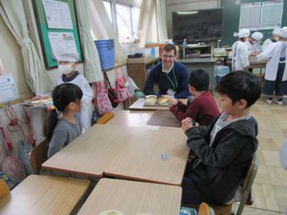 ネイティブスピーカーの先生と給食をいっしょに食べました。