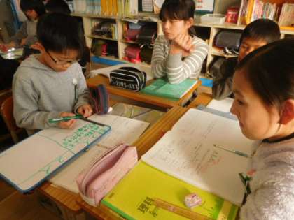 水を熱し続ける実験のあと,ふりかえりに「水を冷やし続けるとどうなるのだろう?」という疑問をもった人がいました。その疑問を問題にして予想を立てました。