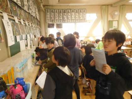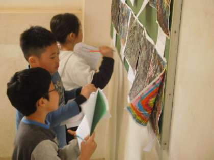 友達の作品を鑑賞しました。細かい部分までよく見ている子もいました。