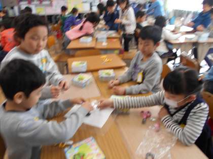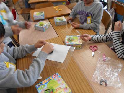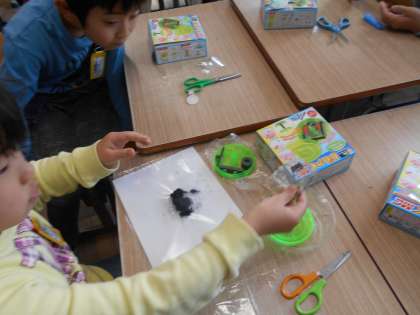磁石の力調べです。学習の最後には砂鉄を使って,磁石の力を目で見える形にしました。