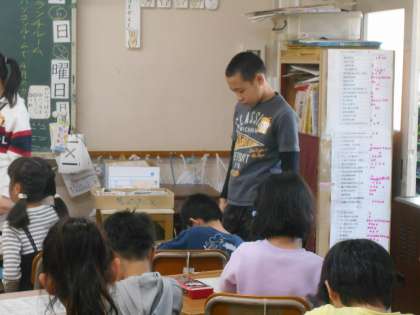 今日は、朝の学習タイムに各クラスに算数を教えに行きました。