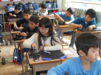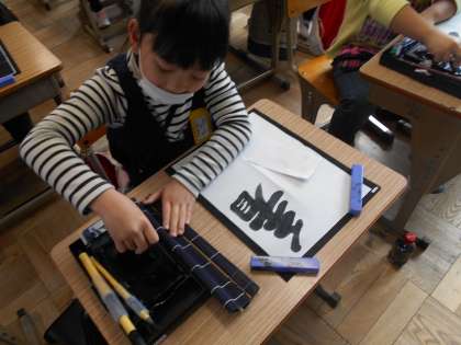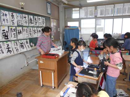 3年最後の書写は学習を自分の好きな字を墨をすって,書きました。1年間でみんな,本当によく上達しました。