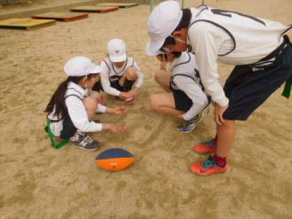 今日のめあてはオフェンスの工夫でした。ゲーム前に作戦をチームで話し合いました。