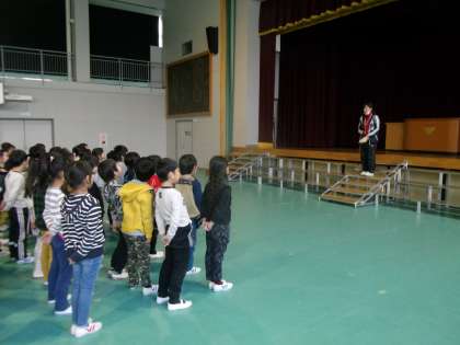 2年生みんなで呼びかけの言葉を言ったり,歌を歌ったりします。