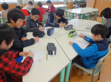 給食当番のグループごとに、お互いのいいところを付箋に書いて贈り合いました。もらった付箋を見て、照れながらも嬉しそうです。学校のために、よりよい給食のために、本当によく頑張った1年間でした。春から5年生は最高学年に、6年生は中学校にと進級しますが、それぞれの場所で、みんながさらに活躍できるよう応援しています。
